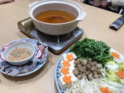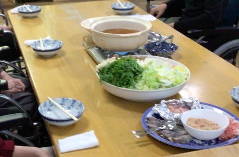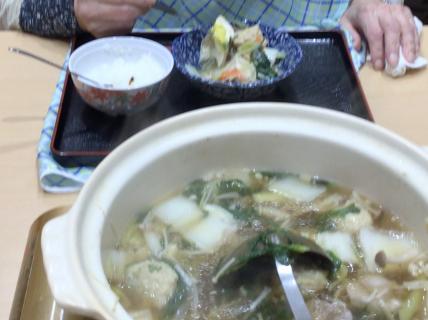 特養各ホールにて昼食時に寄せ鍋を提供しました。