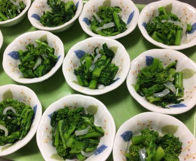 ・菜の花のわさび和え、金時豆煮