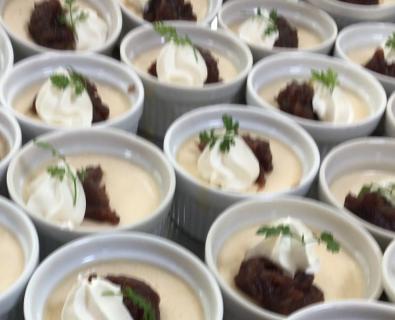 ワンタン麺はワンタンから手作りしました。揚げワンタンにして、ゆっくり食べて頂いてもふやけてしまわないように工夫しました。