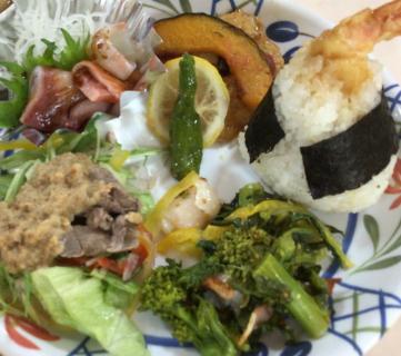 春を感じる菜の花のマリネや大きな天ぷらを入れて握った海老天むすも皆さん喜んでおられました!