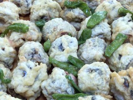 ⑤秋刀魚の梅しそ天ぷら ⑥蓮根じゃこのカリカリサラダ