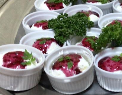 バニラヨーグルトいちごソースは調理員が考案した新メニューで、喜んで頂けたようです♪