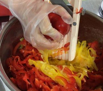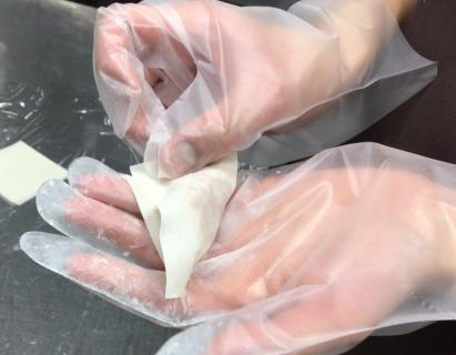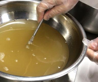 杏仁豆腐は刻み食の方でも同じものを食べて頂けるように、カットの仕方やシロップの量を調整するなど工夫しています。