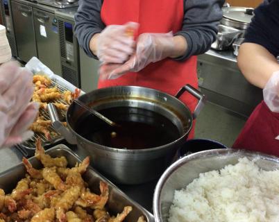 春を感じる菜の花のマリネや大きな天ぷらを入れて握った海老天むすも皆さん喜んでおられました!