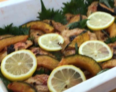 ・旬魚の塩焼き、豚しゃぶサラダ香味野菜(選択メニュー)